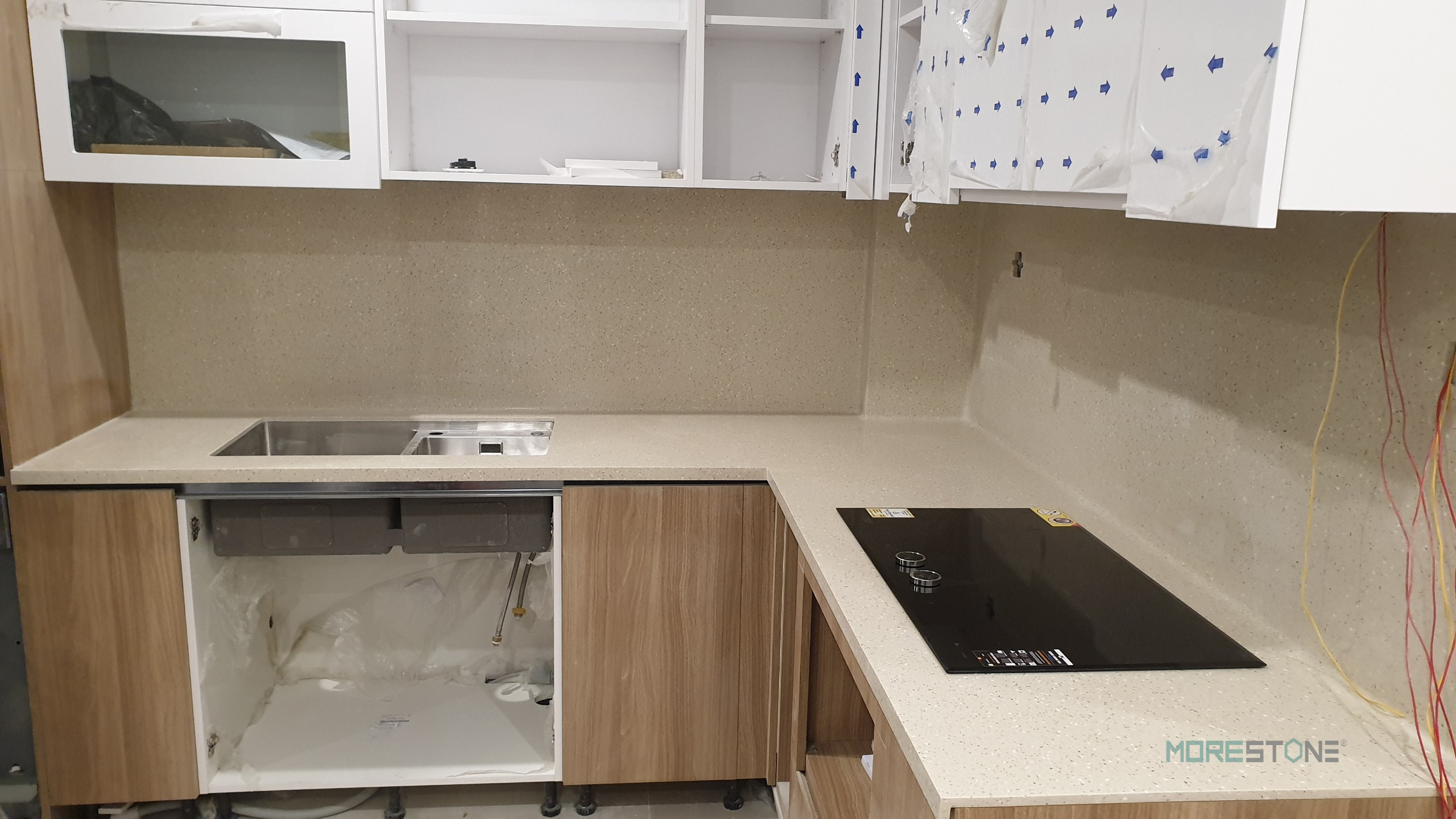 - ốp tường đá liền khối với bàn bếp